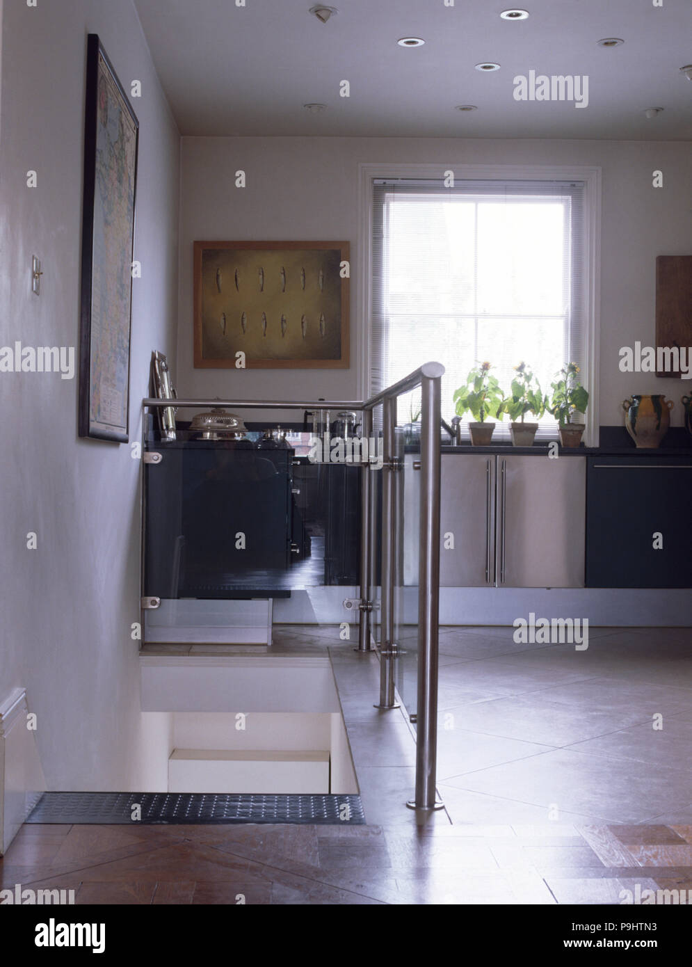 Stainless Steel Guard Rails In A Modern Kitchen Stock Photo