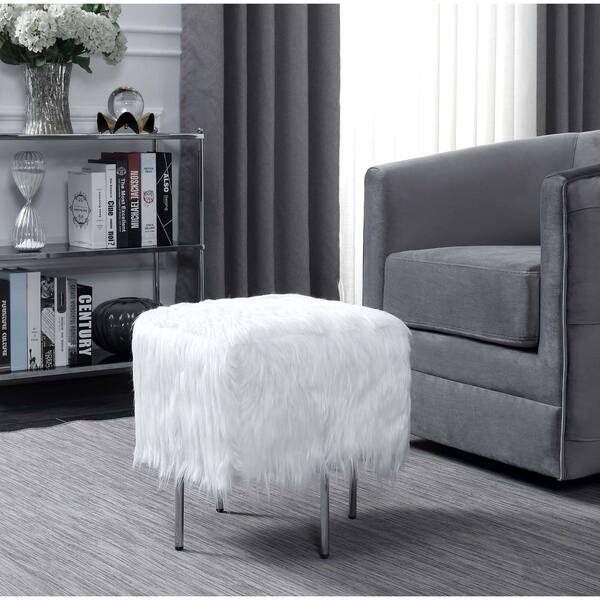 Modern Cube Furry Design Ottoman With Chrome Legs